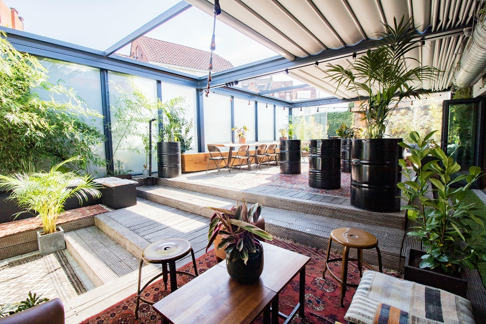 La terrasse est le lieux parfait pour accueillir vos apéros, walking dinners et dîners assis. Elle est entièrement modulable et peut être entièrement couverte et chauffée.